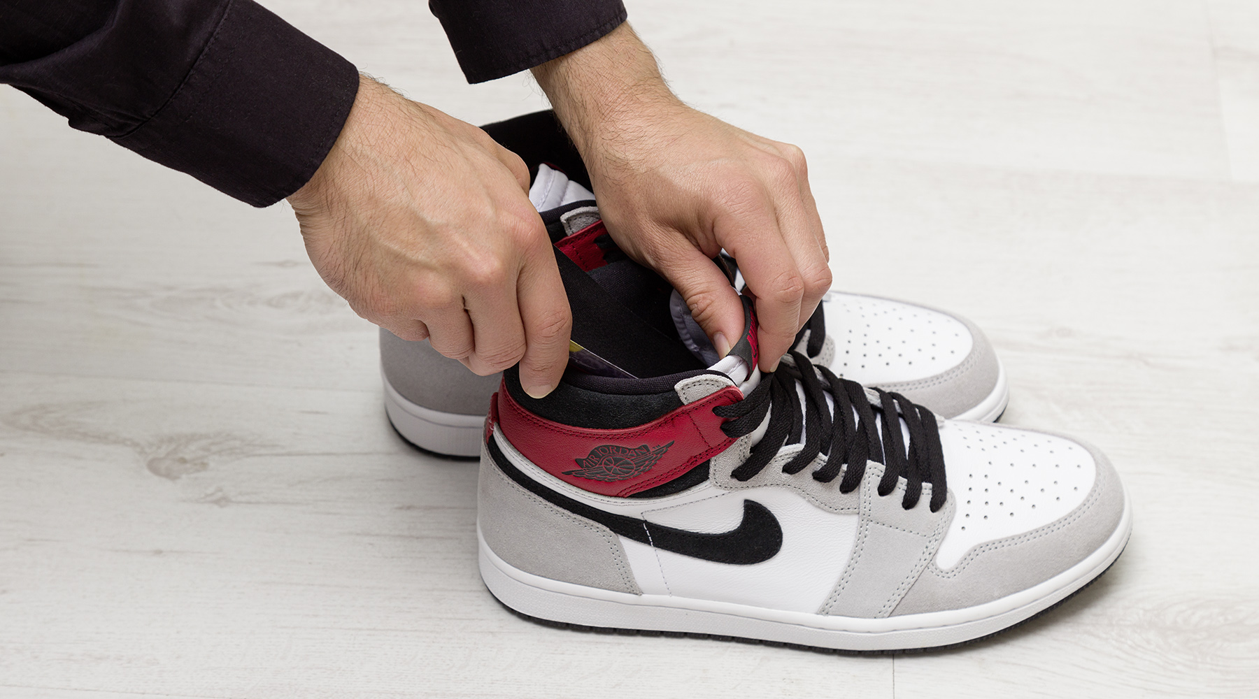 Option 2: Sohle zuerst mit dem Fersenbereich genau in die Ferse des Schuhs legen. Der vordere Bereich der Sohle steht dabei ein wenig nach oben. Mit der einen Hand nun die Sohle im Fersenbereich gut festhalten und mit der anderen Hand die Spitze der Sohle in die Schuhspitze hinein ausrollen bzw. "ausstreichen", bis die Sohle glatt im Schuh liegt.