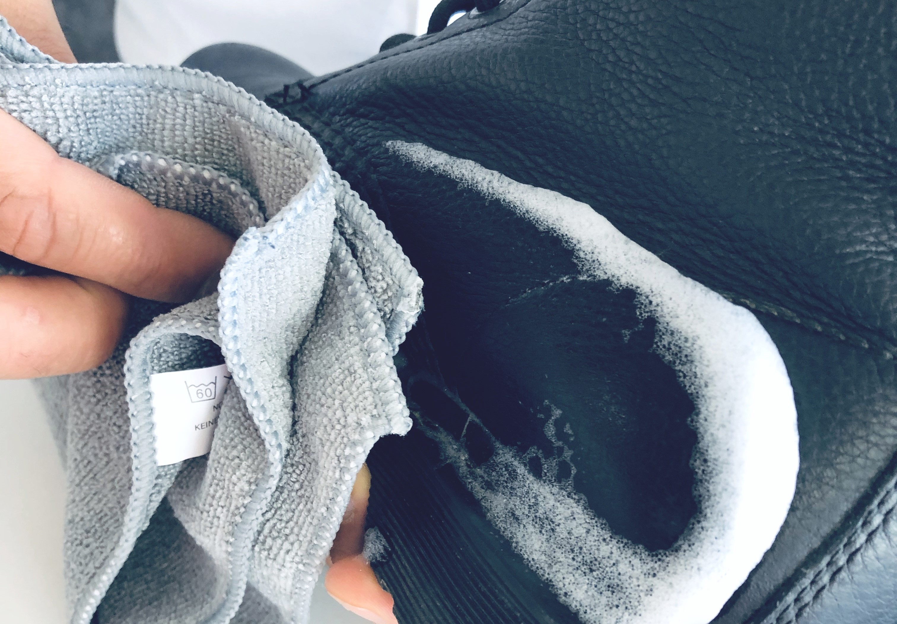 Schaumreinigung (z.B. mit dem SLEEKER Cleaning Foam): Schaum auf das Mikrofasertuch pumpen - nie auf den Schuh direkt - und mit kreisenden Bewegungen gleichmäßig in das Material einarbeiten. Nach der Reinigung Schaumreste mit dem feuchten Mikrofasertuch abwischen.